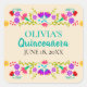 Champanhe personalizado e verde-turquesa Mis Quince Años favorece adesivos em lençóis de autocolantes para seus selos de envelope de convite, bolsas de favor, embrulho de presentes e decorações de festas. O modelo está pronto para você adicionar seu nome e a data de seu aniversário ou sua celebração da quinceanera. Este design divertido e colorido apresenta um design de arte folclórica mexicana em um fundo de champanhe - perfeito para um tema do Partido Fiesta Mexicano. O texto verde-turquesa bonito diz "Quinceañera" em caligrafia fofinha e fica entre as glândulas florais de fiesta em rosa, roxo, verde, vermelho e amarelo. Por favor, dê uma olhada em nossa loja para coordenar convites de Quinceanera mexicanos e suprimentos de festa de aniversário 15.