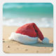 Adesivo Quadrado Chapéu de Papai Noel em uma praia tropical