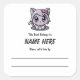Adesivo Quadrado Chibi Purple Cat, Cartão para Crianças com Mensage