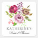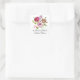 Lindas flores cor-de-rosa fucsia em aquarela decoram este adesivo de festa simples e elegante para uma tarde de primavera de festa de noivado. A adorável caligrafia cursiva é destacada por um lindo buquê floral magenta e roxo vibrante, perfeito para um evento no jardim.