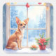 Adesivo Quadrado Chihuahua Snowy Windowsill Holiday Christmas Art