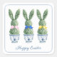 Essas figurinhas de Páscoa apresentam topiárias de coelho verde com laços rosa, azul e amarelo em vasos de flores de chinoiserie azul e branco. Personalize a mensagem de feriado com sua escolha de texto especial.