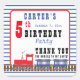Excelente para comemorar o aniversário do seu filho, este design apresenta um trem de seleção de locomotiva a vapor nos trilhos com o nome, a idade, a data da festa e a mensagem dos obrigados. Ilustrações originais e design por Designs Holiday Hearts (todos os direitos reservados).
