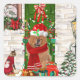 Cachorro Chow Sentado fora de casa decorada com coroa de Natal, árvore de Natal é uma ideia perfeita de presente de Natal para amantes de cachorros.