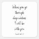 Mova alguém com este encorajador verso Bíblia que diz "Quando você passar por águas profundas, eu estarei com você". O texto é escrito em lindas fontes cursivas a preto sobre um fundo branco. Um excelente de fé cristã, ordene o seu hoje!