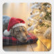 Adesivo Quadrado Christmas Weimaraner Dog By a Tree