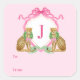 This Christmas gift tag sticker has a preppy grandmillennial design featuring two leopards wearing Christmas wreaths with a monogram letter in the center. Text reads "to: from:" You can personalize with your initial.