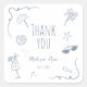 Esses adesivos de agradecimento para chá de panela de noiva com desenhos à mão na praia apresentam um fundo branco crocante com desenhos costeiros azuis empoeirados caprichosos, como conchas, ondas, estrelas-do-mar, óculos de sol e brilhos. No centro, há um texto editável que diz “Obrigado”, com espaços personalizáveis para o nome da noiva e a data do evento abaixo. Perfeitos para decorar lembrancinhas, envelopes, guloseimas, bolsas de boas-vindas e muito mais – todos os detalhes são totalmente personalizáveis para combinar com o tema de noivado à beira-mar.