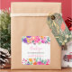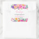 Um adesivo de agradecimento com este agradecimento de chuva de noiva em água-viva floral brilhante e rosa ousado com flores cor-de-rosa pintadas à mão, vermelhas, roxas, laranja e folhagens verdes folhas de eucalipto e folhagem verde com uma fonte de pincel moderno