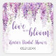 Lindas flores de wisteria em aquarela roxa pendem do topo deste adesivo de chuva de noiva para celebrar "o amor está em flor". Use como selos de envelope ou em lembrancinhas em uma noiva, casamento ou chuveiro de casal roxo, floral ou de primavera. Este adesivo também pode ser personalizado para uma festa de aniversário ou outra celebração floral da primavera. Disponível com produtos correspondentes.