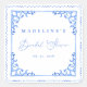 O adesivo quadrado de chuva de noiva em azulejo azul e branco exala elegância com sua mistura de elementos de design moderno e charme mediterrâneo. Os padrões de azulejo pintados à mão adornam as bordas, criando uma moldura cativante para os detalhes do evento. Acentos delicados de aquarela evocam uma sensação de tranquilidade e beleza, definindo o tom perfeito para uma celebração inesquecível.