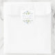 Adesivos elegantes para lembrancinhas de chá de noiva com "obrigado" em uma moldura de flores de aquarela azul claro. Personalize com o nome da noiva e a data do chá.