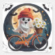 A design tem um pequeno fantasma ciclista com morcegos, aranhas
