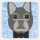 Adesivo Quadrado Cinza Buldogue Francês, azul-aquarela
