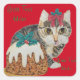 Adesivo Quadrado cinza de gatinho fofo com gato com natal arco verm