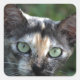 Adesivo Quadrado Cinza de Gato Branco Castanho com Olhos Verdes