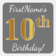 Adesivo Quadrado Cinzas, Faux Dourado 10º Aniversário + Nome Person