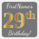 Adesivo Quadrado Cinzas, Faux Dourado 29º Aniversário + Nome Person