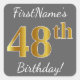 Adesivo Quadrado Cinzas, Faux Dourado 48º Aniversário + Nome Person
