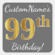 Adesivo Quadrado Cinzas, Faux Dourado 99º Aniversário + Nome Person