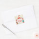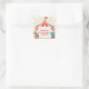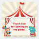 Um adesivo bonito com tenda vermelha e branca de circo, um elefante azul e um palhaço com balões. Perfeito para bolsas ou caixas a favor do partido ou para selos de envelope para o convite correspondente disponível.