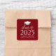 Coloque os envelopes e as bolsas de graduação com esses adesivos modernos! Os autocolantes apresentam um boné de formatura branco no topo da design com "Classe 2025" exibido em caracteres negros sobre fundo burguês. Personalize o adesivo de graduação de burgundy com o nome do formando, a escola e o ano de graduação. Este design é perfeito para usar para segundos graus ou formandos.