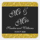 Adesivo Quadrado Clássico Dourado Glitter e Negro Sr. & Sra. Weddin
