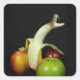 Cabeça de cobra rufo a morfar de uma banana com maçãs a preto.