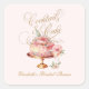 Adesivo Quadrado Cocktails e Bolo de Noiva Elegantes Rosa para Chá