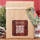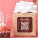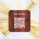 Castanho, impressão de madeira rústica como fundo, texto branco. Adicione o URL do Web site ao código qr.