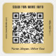 Um adesivo simples de ouro de código QR moderno para sua empresa ou organização. Adicione seu código QR digitalizável e personalize até quatro linhas de texto com seu nome, slogan, slogan, site, número de telefone, etc., ou exclua.