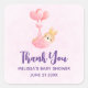 Festa a favor do obrigado que você cola com uma ilustração adorável de um pequeno coelhinho de bebê marrom vestindo uma pequena coroa de ouro. Transportado por balões em um cobertor cor-de-rosa.