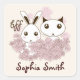 O design do produto apresenta um belo coelho e gatinho com flores cor-de-rosa. Este desenho animado bonito faz adesivos quadrados bonitos e únicos com nome personalizado para suprimentos escolares para crianças, livraria e muito mais!