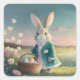 Adesivo Quadrado Coelhinho de Páscoa bonito em jaqueta azul