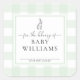 Este adesivo em Chá de fraldas apresenta um design de gingham clássico e fontes modernas. O cabeçalho do script é uma imagem que não pode ser editada. Todo o outro texto é totalmente editável. Para personalização mais avançada deste design, basta selecionar o botão "Personalizar" acima. Adicione o adesivo ao seu convite juntamente com o cartão de solicitação de livro correspondente.