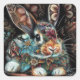 Adesivo Quadrado Coelho Whimsso Rabbit Floral Abstrato Teal Preto