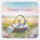 Adesivo Quadrado Coelhos de Páscoa verificando ovos de Páscoa