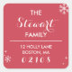 Etiqueta de endereço vermelho festivo e moderno com flocos de neve de giz desenhado à mão, perfeita para proteger os envelopes do cartões de natal.