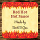 Um adesivo de conserva ou jarra personalizado com letras vermelhas, ocidentais e castanhas, para molhos quentes, vernizes, salsa ou outras receitas quentes com chamas vermelhas e laranja à volta do design, num fundo de pergaminho falso.