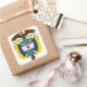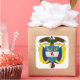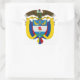 Casaco de armas da Colômbia. A casaco de armas da Colômbia contém um escudo com numerosos símbolos. No topo do escudo está um Condor Andino segurando uma coroa de azeitona e o condor simbolizando a liberdade. O lema nacional, Libertad y Orden (Espanhol para a Liberdade e a Ordem), encontra-se num pergaminho entre o pássaro e o escudo, a preto, sobre fundo ouro. O condor é representado virado para a frente com suas asas estendidas e olhando para a direita.