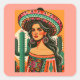 Você está procurando adesivos bonitos para uma festa? Este design apresenta uma mulher mexicana deslumbrante adornada com roupas coloridas, cercada por uma paisagem de cactos. Perfeito para cinco de maio, mês da pátria, mês da herança hispânica, chá de panela de festa, ou celebrando uma noiva de festa.