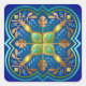 Bonito adesivo quadrado de padrão medieval em ouro, azul, verde e cobre.