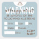 Adesivo Quadrado Comida de Bakery Alerta de Alergia Segurança Paste