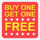 Os paus quadrados, especiais, oferecem autocolantes de varejo com texto amarelo "Comprar um, livre" em um fundo vermelho com estrelas brancas acima e abaixo da palavra "livre". adesivos de venda de excelente para a sua empresa.