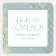 Torne o planejamento da celebração da Primeira Comunhão fácil com esta coleção de modelos DIY. Ela contém um convite, envelope coordenado e etiqueta de endereço de devolução. Você também encontrará placas de boas-vindas, suprimentos para festa e cartão de agradecimento. Todo o texto pode ser editado. Procure por itens na coleção Dusty Blue Gold Arch. Este design botânico abstrato em azul e dourado é moderno, simples e sofisticado. O texto retrô vintage é clássico e ainda muito atual. Este adesivo quadrado contém Primeira Comunhão em letras grandes com o nome do menino e data abaixo.