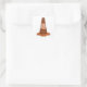 E ilustração de um cone de estrada, com uma descrição tipográfica de muitos dos diferentes nomes usados para esses cones. Isso inclui canalização de cone, cone de construção, cone de estradas, autoestrada, chapéu de bruxas de cone, cone de caução e pilão.