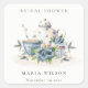 Adesivo Quadrado Conjunto de chá e xícaras de chá azul aqua floral