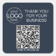 Compartilhe um obrigado final com este adesivo anexado à embalagem ou ao recibo. Tipografia e composição simples e limpas. Espaço reservado para seu logotipo e código QR proeminente para direcionar o tráfego para informações de acompanhamento ou ofertas. Excelente modo de adicionar um simples toque pessoal enquanto procura novos negócios. Precisa de ajuda para personalizar ou personalizar? Entre em contato conosco. Estamos felizes em ajudar.