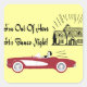 Diversão de cores retrorreflectoras e Design de estilo Bunco por Artinspiração. Uma reportagem mostrada é uma retrógrada mulher dirigindo para longe de sua casa num conversível vermelho. O texto diz "Estou Fora daqui - É Noite de Bunco!" Ela dirige para longe de sua casa cheio de lavanderia, limpeza de cozinhar, crianças, marido e está indo para uma noite de diversão em Bunco! Um presente de excelente ou prêmio de aniversário, anfitriã, feriados só por diversão.