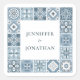 Adesivo Quadrado Convite para azulejos espanhóis azuis e cinzas